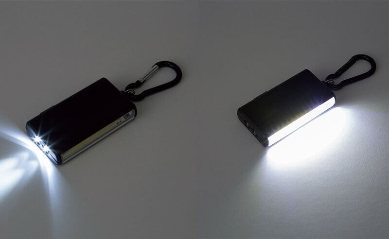 カラビナ付LEDキーホルダーはスポット型と広範囲型の2種類からライトの切り替えが可能になります。