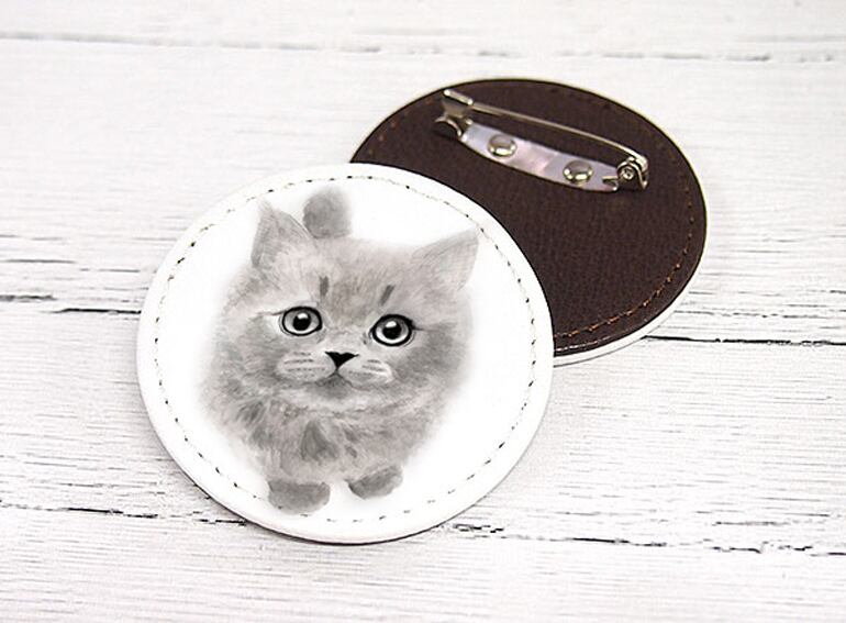 クリップで洋服に挟んだり、安全ピンで帽子やバッグなどにつける事ができる用途が豊富なレザーバッチです。