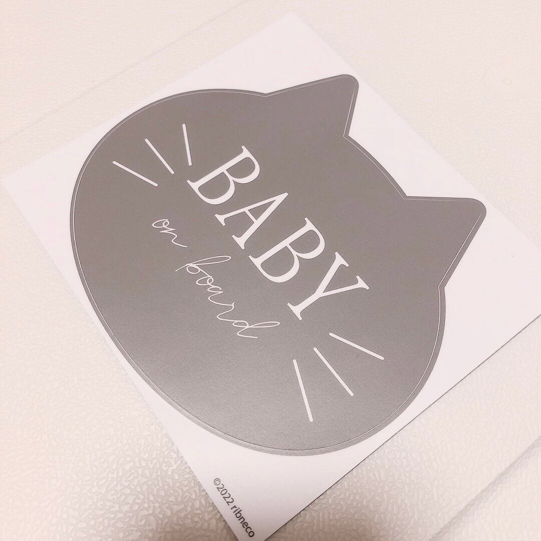 赤ちゃんが車に乗っていることを知らせる猫型のステッカーです。